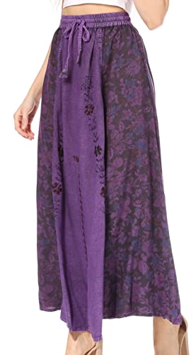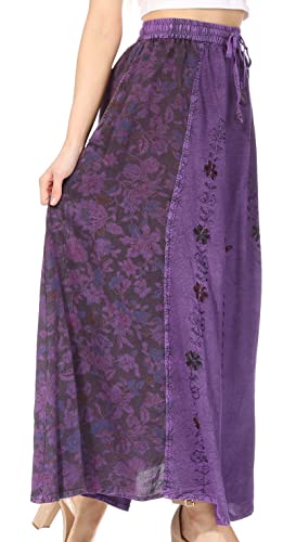 Sakkas 1827 - Gonna di Ricamo Boho da Donna Maran con Vita e Tasche in Elastico di Pizzo - Viola - OS