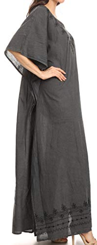 Sakkas 1901 - Favi Womens Casual Long Maxi Dress Caftan Cover Up Loungewear in Rayon - 1-Black - OS