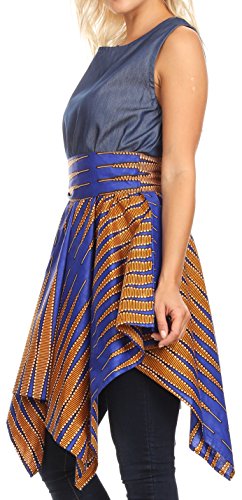 Sakkas 2196 - Lani Womens Cocktail Senza Maniche Abito Hi-Lo in Stampa Africana con Tasche - 401-Multi-OS