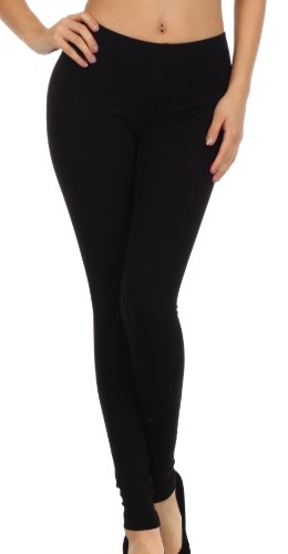 Sakkas I0435 Leggings Elasticizzati Senza Piedi in Misto Cotone Tinta Unita - Made in USA - Nero Tinta Unita - M