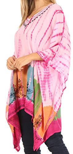 Sakkas K2022New - Eliana Larga Long Tall Ricamato Tie Dye Ombre Batik Poncho Camicetta Superiore - Fucsia - OS