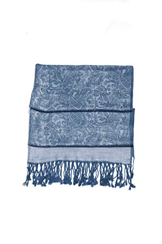Sakkas 70" x 28 "Paisley Self-Design scialle/Wrap/Stole - DenimBlue
