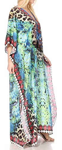 Sakkas SS1674 KF2503518LAT - LongKaftan Georgettina Ligthweight Stampato Lungo Caftano Dress/Cover Up - Turchese/Nero -OS