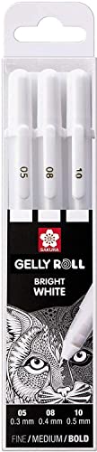 Sakura Gelly Roll White, 3 penne Bright White in una custodia, Mix-Size 05/08/10 + Set di 3 penne Sakura Gelly Roll Basic, bianco 08 ET Pigma Micron Nero 05