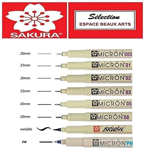 Sakura PIGMA MICRON NERO 005.01.02.03.05.08.BRUSN.PN. - Set da 8 pezzi