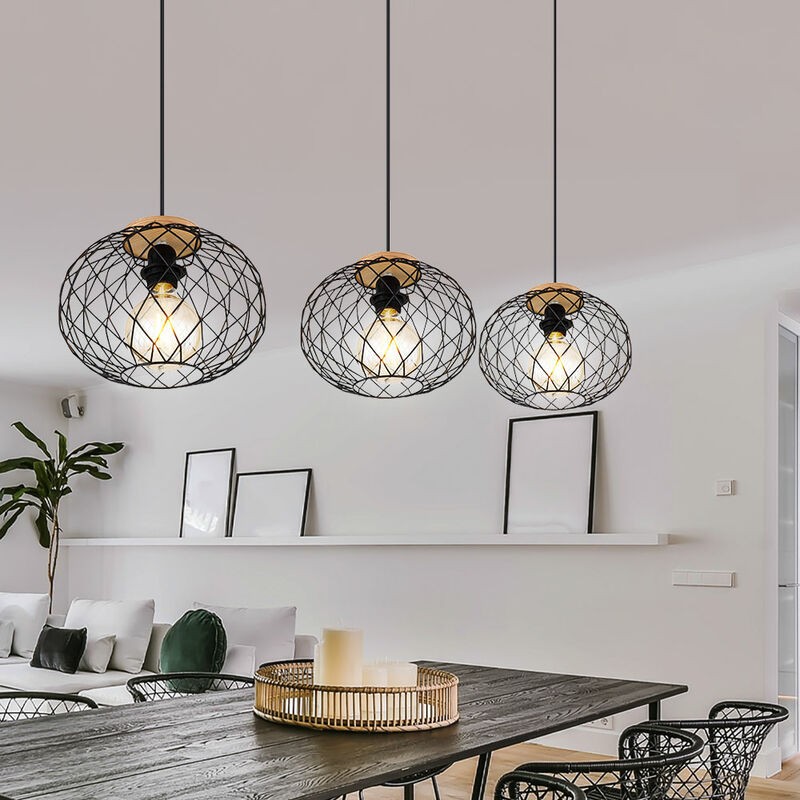Descrizione Questa lampada a sospensione (95x25 cm) sarà un'aggiunta elegante ai tuoi interni. È costituito da una barra nera opaca su cui sono fissati tre cavi neri. Questi sono dotati di tre schermi a griglia metallica elegantemente curvati, che puoi equipaggiare con lampadine E27 a tua scelta, il che significa che puoi determinare individualmente il colore e la luminosità della luce. Puoi completare il quadro generale nelle tue quattro pareti con altri modelli della stessa serie. Le lampadine non sono incluse nella fornitura. Particolare lampada • Tipo di lampada: lampada a sospensione • Materiale: metallo, MDF • Colore: nero, marrone • Grado di protezione: IP20 • Classe di protezione: 1 • Schermi a gabbia • Diametro paralume in cm: 25 • Lunghezza x larghezza x altezza in cm: 95 x 25 x 150 • Prese: 3x E27 • Lampadina inclusa: n • Potenza della lampada: 3x massimo 60 watt • Voltaggio: 230V, 50Hz