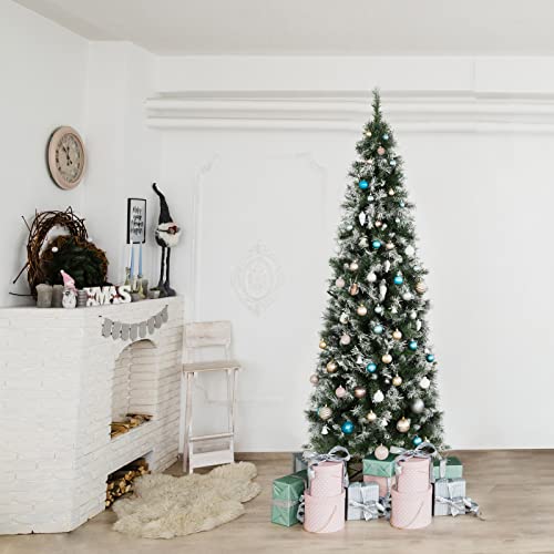 SALCAR Albero di Natale Slim Artificiale 180 cm, Albero di Natale Innevato con Guanti e 618 PVC Punte per Rami,Supporto in Metallo, Montaggio Rapido, Ignifugo