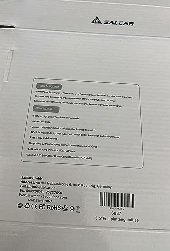 SALCAR USB 3.0 Custodia Disco Fisso per 3.5" SATA HDD And SSD UASP Mode, con Cavo USB3.0 & 12V 2A Alimentazione, Fino a 8TB