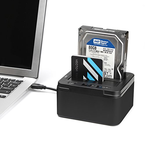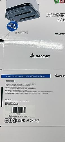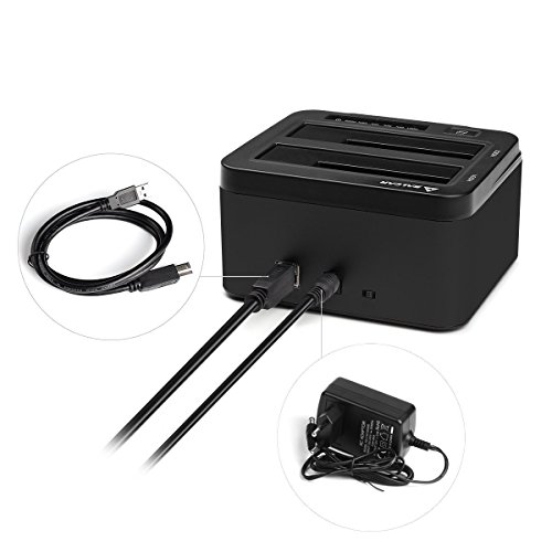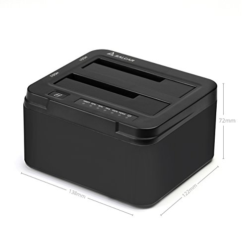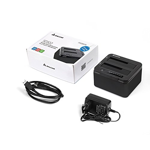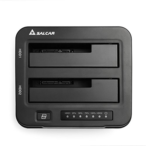 Salcar USB 3.0 non in linea Clone Docking Station 2-bay ottimizzato per hard disk HDD/SSD da 2,5 e 3,5 pollici (SATA I/II/III), compreso il cavo USB 3.0 e 12V PSU 3A, 2 x 8 TB Aluminum (Nero)