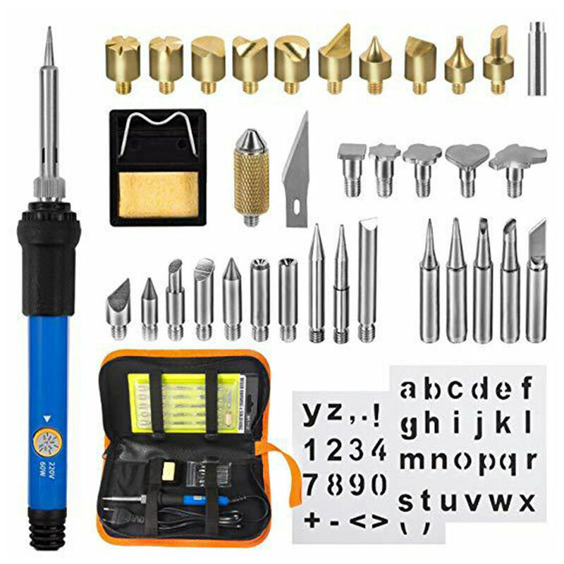 Caratteristiche: 1. Penna di ferro: funzioni di saldatura e combustione del legno, può lavorare a temperatura regolabile da 200 gradi ~ 450 gradi/392 gradi F ~ 842 gradi F. Il kit include convertitore per lavori a legna. 2. Basso consumo energetico: 60 W di potenza, risparmio energetico e rispetto dell'ambiente. 3. Applicazione: ideale per la combustione del legno, la combustione del legno, il trasferimento di immagini, il taglio del modello, la saldatura, il processo e la goffratura del tessuto. 4 Riscaldamento rapido: kit di riscaldamento rapido del legno da 60 W di alta qualità, adatto a principianti, esperti del legno, ecc. 5. Facile da usare: la tecnologia ceramica con riscaldamento interno fornisce un riscaldamento rapido. Nessuna stazione di saldatura, solo plug and play. 6. Impugnatura antiscivolo: l'impugnatura in gomma è antiscivolo, ergonomica, sicura e comoda da impugnare. 7. Alta qualità: resistente alle alte temperature, tocco morbido e confortevole. Specifiche