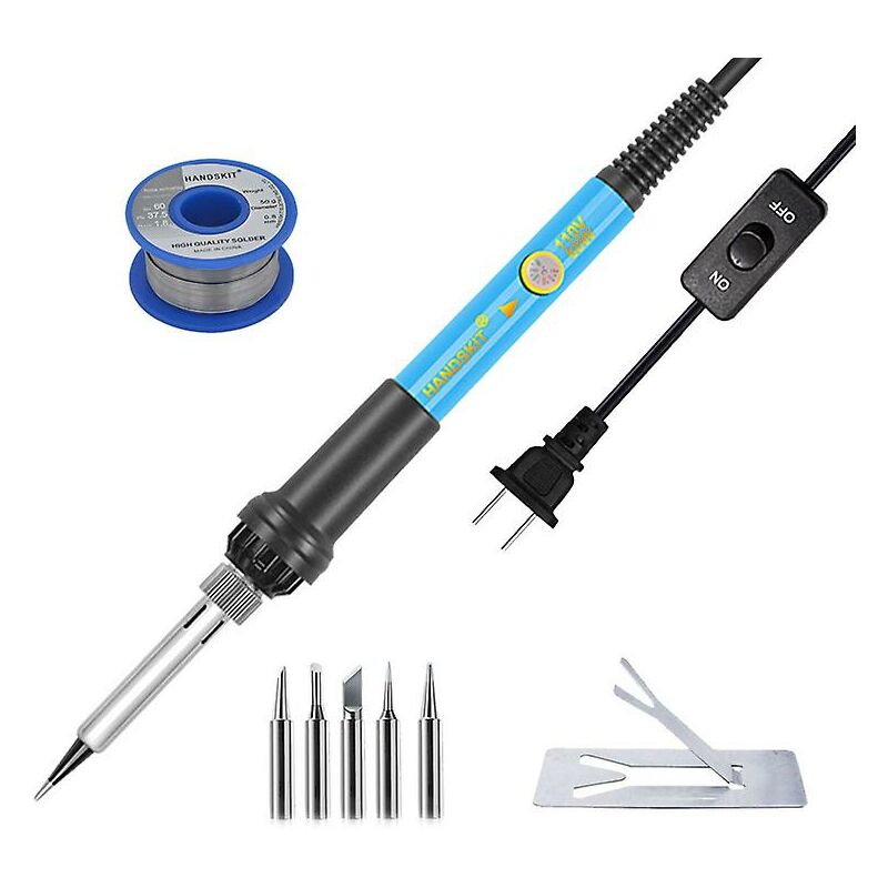 Display a cristalli liquidi, comoda modalità di interazione uomo-computer - Impugnatura con texture smerigliata, bella e generosa, la struttura è conforme al design ergonomico e l'impugnatura è comoda. Kit impugnatura per saldatore con interruttore, display LCD e pulsanti di controllo +/-. La temperatura viene visualizzata direttamente sul display LCD digitale e può essere impostata tra C e F. È possibile regolare facilmente la temperatura o altre funzioni con una sola mano. [65 W di potenza e riscaldamento più rapido e temperatura più stabile] Grazie al microcomputer e al sensore PID, la saldatura del ferro può mantenere un'elevata precisione e una temperatura costante. Riscaldatore PTC a quattro conduttori, velocità di riscaldamento più rapida, punta per saldatore di alta qualità. Grazie all'alimentatore da 65W, la punta del saldatore può raggiungere la temperatura impostata in pochi secondi. E 6 fori di raffreddamento dissipano il calore più velocemente [Modalità di sospensione