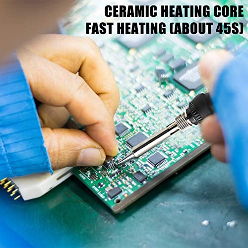 【Saldatore con interruttore ON/OFF】 Il kit saldatore ha un interruttore on/off per un facile utilizzo. Il saldatore da 60 W 220 V consente di impostare la temperatura desiderata da 200 a 450 ℃ ruotando la manopola di regolazione, può essere aperto, chiuso e azionato liberamente e facilmente