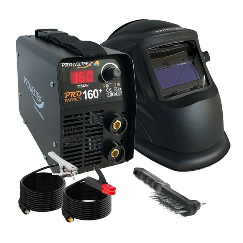 Evidenze: - Elevato ciclo di lavoro 160A al 60% - Protezione termostatica - Ventilazione HOT FORCE - Adescamento assistito - Il sistema anti-aderenza dell'elettrodo interrompe il flusso elettrico per evitare che l'elettrodo si attacchi al lavoro. - Arco stabilizzato - Garantito per 3 anni Caratteristiche: - Norme EN 60974-1 e EN 60974-10. - Ciclo di lavoro: 160A al 60% - Usi: Professionali Saldatura: MMA. - Corrente di saldatura: 15-160 A. - Display digitale - Tensione monofase 230V 50/60Hz. - Potenza assorbita: 6,8 kVA. - Tensione U0: 90 V. -Alimentazione 16 A. - Saldatura: Acciaio, Ghisa, Acciaio inox. - Diametro dell'elettrodo: da 1,6 a 4,0 mm. - Spessore di saldatura: da 1,5 a 10 mm. - Grado di protezione: IP 21S. - Lunghezza del cavo, del morsetto di massa e del portaelettrodo: 1.5 m. - Peso del solo palo: 3,6 kg. Caratteristiche del cofano -MMA TIG MIG. - Energia solare. - Display LCD. - Indice UV/IR: DIN 16. - Archetto regolabile. - Classe: 1/1/1/2. - Campo visivo: 89 x 39