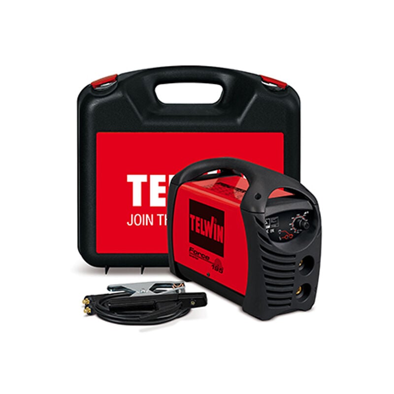 Saldatrice inverter Telwin Force 195 La saldatrice inverter a elettrodo MMA Telwin Force 195 è estremamente leggera e compatta in grado di offrire un'elevata maneggevolezza,grazie al peso e alle dimensioni contenute, e grandi performance sottolineate da una potenza max di 170A. La Telwin Force 195 garantisce elevata stabilità della corrente di saldatura in caso di variazioni della tensione di alimentazione.Dotata di molteplici sistemi di sicurezza:Protezione termostaticaSovratensioneSottotensioneSovracorrentemotogeneratore (+/-15%): Tutti gli inverter Telwin garantiscono il corretto funzionamento pervariazioni di tensione di alimentazione fino al 15%, è opportuno che i generatori siano adeguatamente stabilizzati.Dispositivi Hot Start e Arc Force: migliore innesco dell'arco e del cordone di saldatura.Anti-Stick: sistema che elimina il problema dell'incollamento dell'elettrodo.Elettrodi di diametro 1,6 - 4 mm. Elettrodi utilizzabili: rutili, basici, inox, ghisa eccQuesta saldatrice è