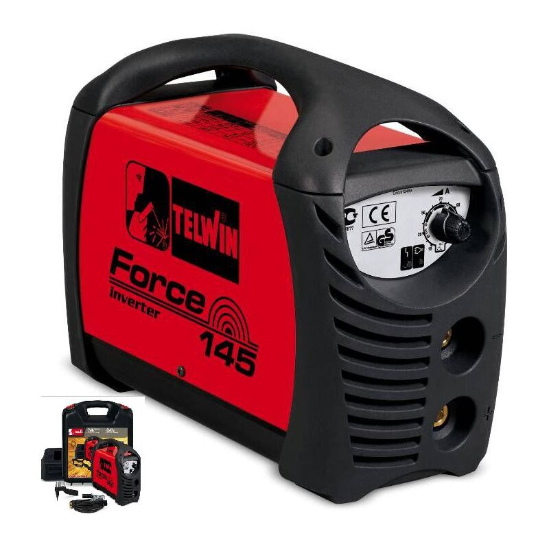 SALDATRICE INVERTER FORCE 145 • Potenza: 3,5 Kw (125 Amp al 60%) • A corrente continua (DC) • Peso e dimensioni ridotti • Elevata stabilità della corrente di saldatura alle variazioni della tensione di alimentazione • Protezioni termostatica, sovratensione, sottotensione, sovracorrente, motogeneratore • Ventilazione forzata • Ø elettrodi max mm. 3,2 • Grado di protezione IP21 • Completa di accessori per la saldatura MMA e valigetta in plastica • Dimensioni: cm. 38x42x17 h • Peso: Kg. 5,5