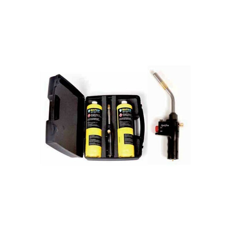 Kit per saldatura a cannello WIGAM SPITFIRE PRO, 1 torcia cannello + 2 bombolette MAP-HP, WIG 10001037 Kit per saldatura a cannello WIGAM SPITFIRE PRO, 1 torcia cannello + 2 bombolette MAP-HP. Fiamma più grande e di maggiore intensità. Utilizzabile con MAP-HP e Propano. Blocco di sicurezza per evitare accensioni accidentali. Bloccaggio del tasto di accensione per uso continuo. Punta del bruciatore sostituibile. Impugnatura ergonomica.