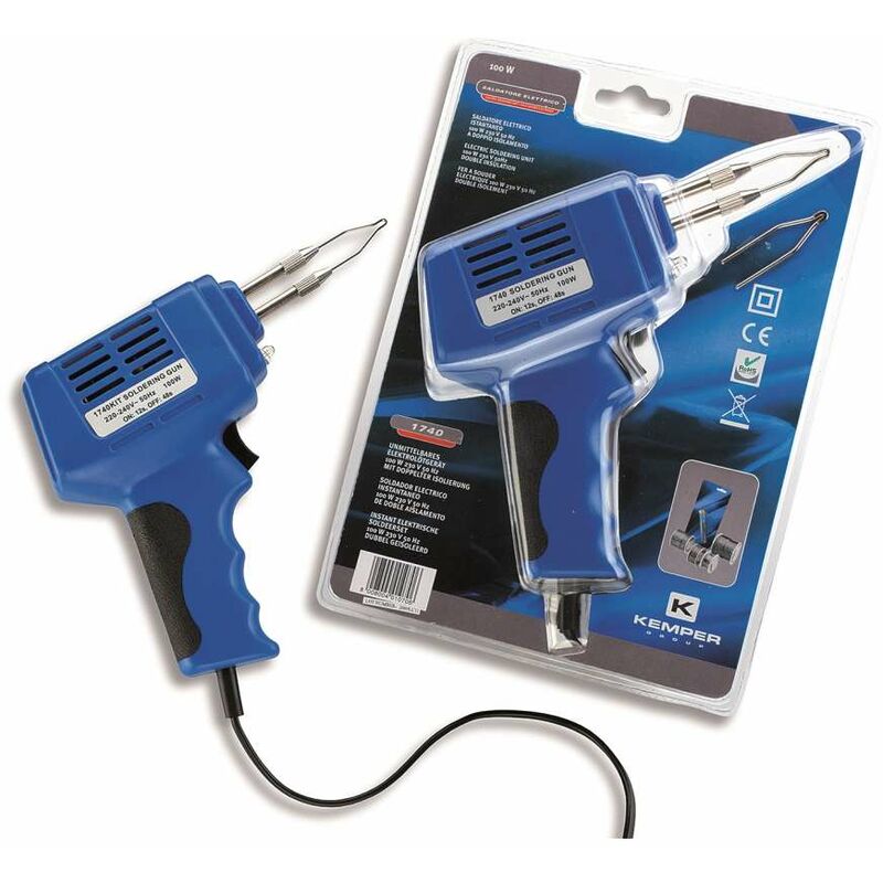 Saldatore 100W dotato di 3 punte, pasta e stagno con valigetta Tipologia - Saldatori Marca - Kemper Modello - 1740KIT Peso - 0,624 kg Potenza - 100 W Quantità - 6