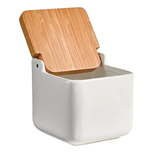Sale per cucina in ceramica bianca / sale per sale quadrato con coperchio in legno apribile/ciotola per sale e sale grasso/ vaso per il sale realizzato in ceramica + legno