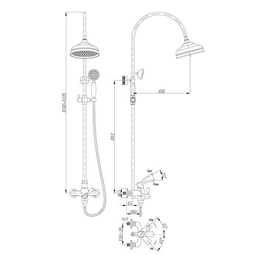 Inclusi nella confezione: Asta, doccetta, flessibile doccia (circa 150 cm), raccordi