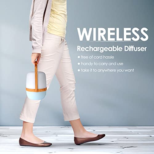 SALKING Diffusore di Oli Essenziali Senza Fili, 100ml Ricaricabile Diffusore di Aromi, Batteria caricata diffusore per Oli Essenziali con Calda Luce Notturna, Senza BPA, Viaggi e Outdoor - Blu