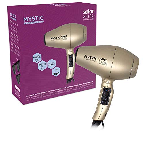 Salon Studio Professional - Asciugacapelli Ionico Professionale Mystic Oxygen Technology - Phon Ioni per Capelli Colorati e Decolorati - Colore Oro