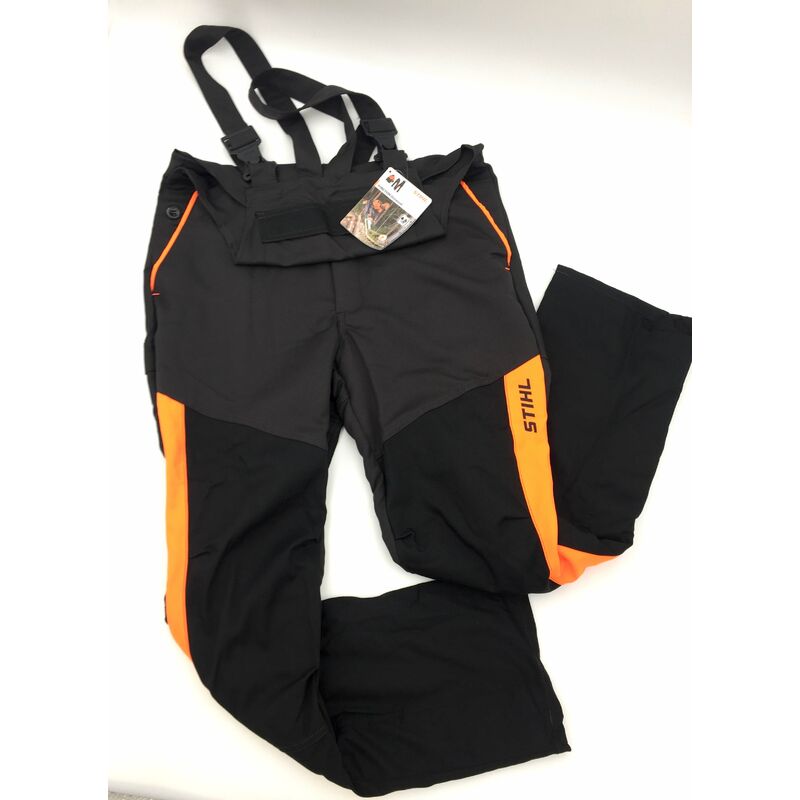 PANTALONE FUNZIONE UNIVERSALE: PROTEZIONE TAGLIO TESTATA STIHL FUNCTION I pantaloni protettivi universali per motoseghe offrono una buona protezione ai proprietari privati ??di foreste e proprietà e sono adatti, ad esempio, per segare legna da ardere o in agricoltura per lavori occasionali con una motosega. I pantaloni sono realizzati con un mix funzionale di materiali, un tessuto leggero ed elastico nella zona superiore e un robusto misto cotone-poliestere nella zona delle gambe e sono disponibili nella vestibilità regolare. Il materiale di ventilazione sulla parte posteriore delle cosce garantisce un clima interno piacevole e un buon comfort. Una protezione antitaglio a 9 strati integrata offre una buona protezione quando si lavora con la motosega. A temperature più fredde, la protezione renale ti tiene al caldo. Due tasche laterali, una tasca posteriore e una tasca per metro offrono spazio sufficiente. Le bretelle STIHL possono essere fissate ai bottoni dei pantaloni FUNCTION