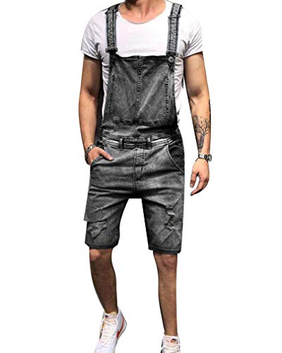 Salopette in Denim per Uomo Strappati Tuta Jeans Corti in Bretelle Pantaloni Corti Salopette da Casual Lavoro Grigio XL