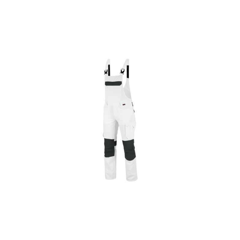 penne (2 tasche), porta metro (1 tasca). Con le 5 ampie tasche esterne e il tascone sulla pettorina, puoi tranquillamente portare con te tutti gli attrezzi di cui hai bisogno. Le cerniere e i bottoni sono in materiale plastico e coperti da una patta in tessuto. In questo modo è possibile svolgere attività su superfici delicate senza il pericolo di creare graffi o danneggiare i prodotti. Se si lavora in un aereoporto, l'assenza di metallo nella salopette ti permette di passare nel metal detector senza che suoni.Salopette bianca resistente e di qualità per artigiani e pittoriIl taglio ergonomico sul ginocchio e un inserto elasticizzato sulla cintura assicurano un comfort ottimale. A norma EN 14404 se si utilizzano le nostre ginocchiere da lavoro, facilmente inseribili all'interno delle tasche porta ginocchiera. Il tessuto Klopman certificato OEKO-TEX® ti