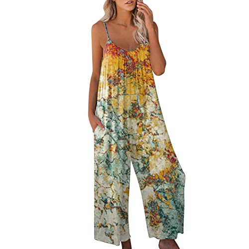 Salopette Pantaloni da Donna Tuta Lunga in Lino Pagliaccetto Senza Maniche Donna Stampe Boho Elegante Jumpsuit Pantaloni Tuta Donna Estivi Tutine Donna Estate Lunghe Donna Jumpsuit Ragazza Elegante
