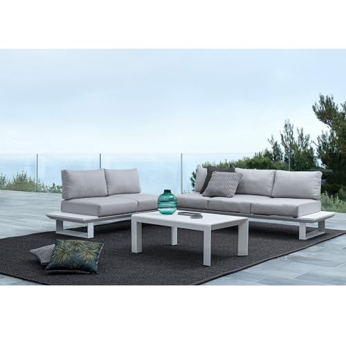 Struttura in alluminio, verniciato a polvere (poliestere). cuscini sfoderabili con tessuto olefin (100% polipropilene). gambe e schienali da assemblare.