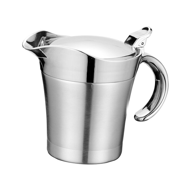 1. Il corpo principale della nostra pentola per salsa di bistecca è realizzato in acciaio inossidabile 304 di alta qualità per uso alimentare, resistente alla corrosione, non facile da arrugginire e durevole. La parte superiore e l'impugnatura sono realizzate con materiali ad alta resistenza per uso alimentare, che non solo possono prevenire le scottature, ma garantiscono anche l'effetto di isolamento termico. 2. Prestazioni di isolamento: il materiale isolante in acciaio inossidabile a doppio strato può mantenere a lungo la temperatura della salsa senza perdite, in modo che il gusto della salsa sia mantenuto nel miglior stato. 3. Bocca a forma di V con impugnatura laterale portatile per facilitare il versamento della salsa senza scottarsi e fuoriuscire. 4. Grande capacità: la grande capacità di 400 ml può contenere più sugo, permettendoti di goderti abbastanza sugo durante le feste o i banchetti di famiglia. 5. Ampia gamma di usi: ottimo effetto termoisolante, adatto per conservare