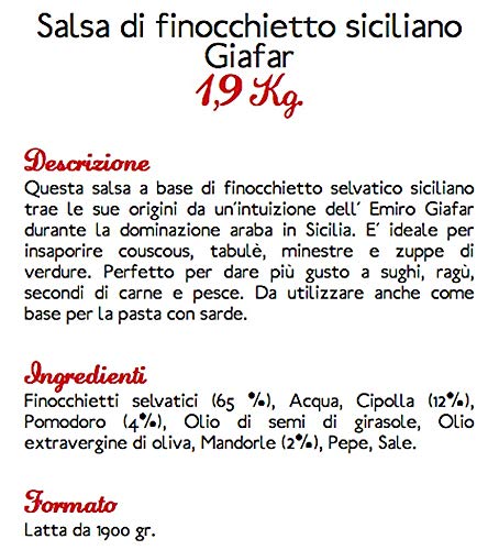 Salsa di finocchietto selvatico siciliano - Latta da 1,9 Kg. - Senza glutine