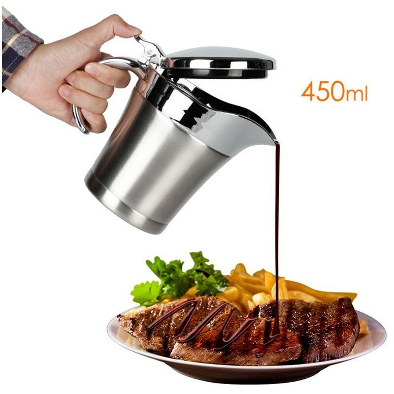 Doppio isolamento: mantenere la salsa o il liquido a bassa temperatura più a lungo. Coperchio incernierato e manico ergonomico: facile da riempire e impugnare. Grande capacità - 450 ml: ideale per i pasti in famiglia. Materiali di alta qualità: coperchio e manico realizzati in acciaio inossidabile a doppio strato e plastica ABS.