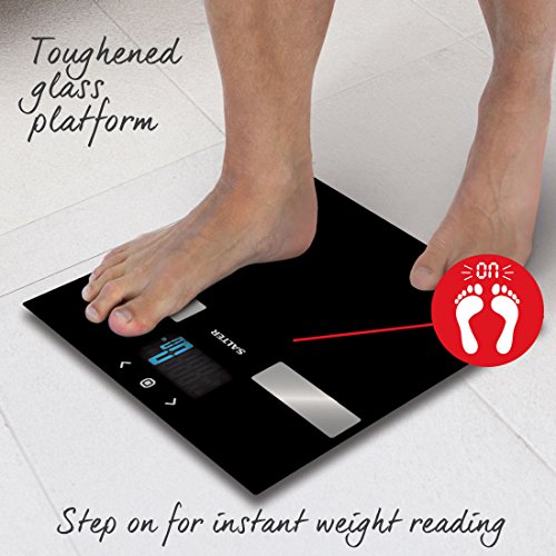 Salter bilancia pesapersona analizzatrice, Misura% di massa magra, ossea, corporea, Memoria 10 utenti, modalità atleta, Garanzia 15 anni, Nero