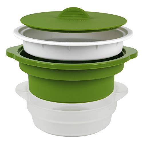 Salter Bw06259 - Vaporiera per Microonde Duosteam con Tecnologia dell'Acciaio al Carbonio per Una Cottura Salutare di Verdure, Carne e Pesce con Coperchio in Silicone, Verde, 26.4 x 24 x 12.2 cm