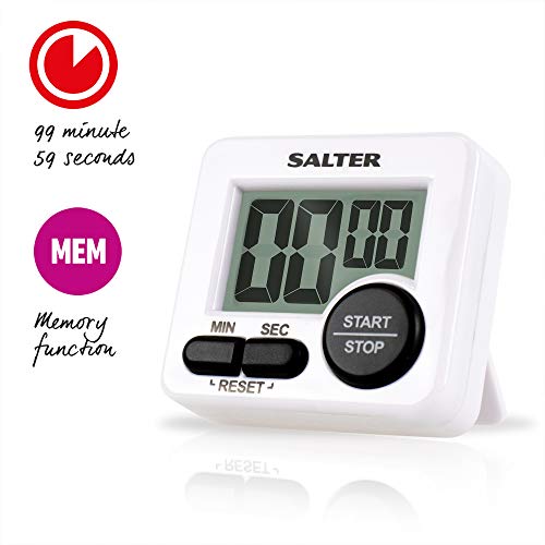 Salter Timer-Orologio Digitale elettronico, Dispositivo di Conto alla rovescia per Cottura di precisione, 99 Minuti e 59 Secondi, Pulsante Start-Stop Grande, 398, 13 x 2.5 x 17 cm