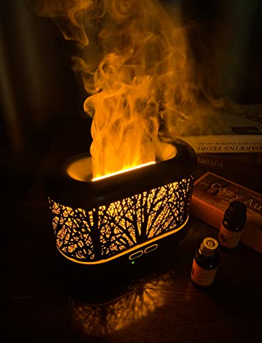 Sicuro da Usare: Diffusore di aromi di fiamma metallica ha un serbatoio dell'acqua da 200 ML, un riempimento d'acqua può essere utilizzato continuamente per 15 ore, molto conveniente. Attraverso la luce e la nebbia. Diffusore di Oli Essenziali Ultrasuoni è perfetto per il soggiorno, l'ufficio, il salone di bellezza, la camera da letto, lo yoga o il viaggio.