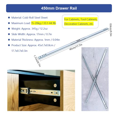 SALUTUY Guida per cassetti, 450x17 mm 2 Pezzi/Set Guide per cassetti Resistenti per Tutte Le installazioni dei cassetti