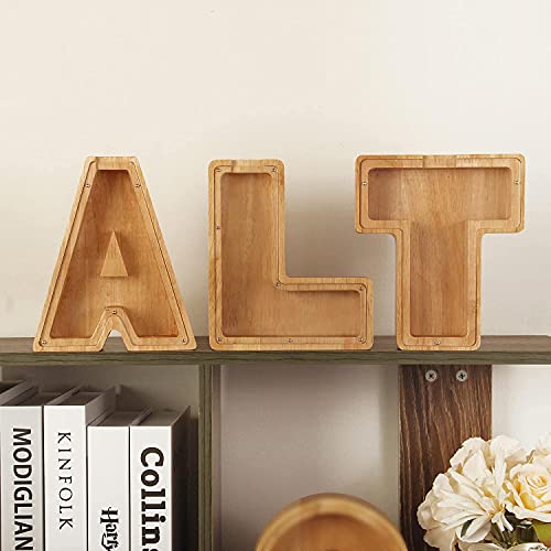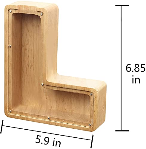 Salvadanaio a forma di maialino in legno personalizzato, con lettere dell'alfabeto, salvadanaio in legno personalizzato, per ragazzi e bambini, monete, ragazze adulti (L)