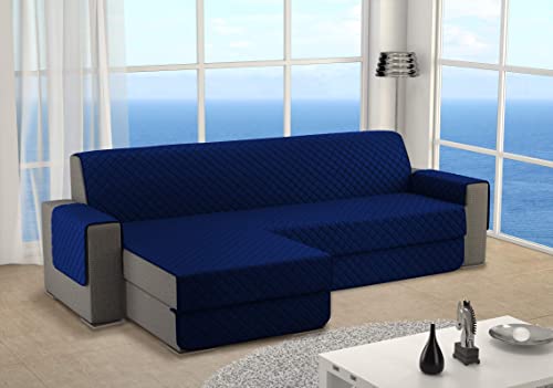 Salvadivano Reversibile Con Penisola 250 cm Colore Blu, Fodere Copridivano Trapuntato, Imbottitura Doubleface