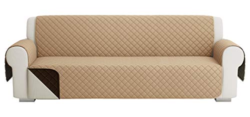 Salvadivano Reversibile 4 Posti (220 CM) Beige Scuro & Marrone, Fodere Copridivano Trapuntato, Imbottitura Doubleface, Antiscivolo