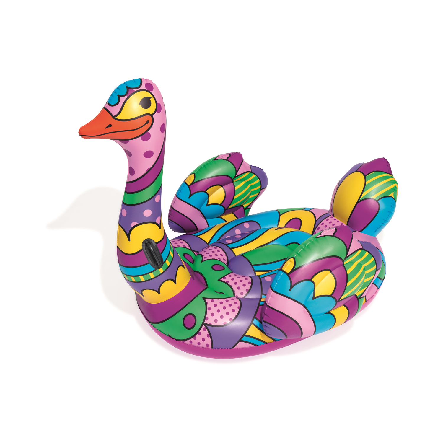 Materassino salvagente cavalcabile colorato a forma di struzzo, dotato di pratiche maniglie per aggrapparsi saldamente mentre si è in acqua. Un accessorio per vivacizzare i pomeriggi al mare o in piscina dei vostri bambini. Facile da gonfiare grazie alla valvola che permette di immettere aria senza che fuoriesca. Una volta gonfiato mantiene la forma a lungo. Dimensione 190x166 cm. Avvertenze: Da usare in acqua dove il bambino é immerso e sotto la supervisione di un adulto. Non adatto a bambini sotto i 3 anni. Richiesta la supervisione di un adulto al fine di evitare qualsiasi rischio di annegamento Avvertenze: Gioco acquatico. Contiene piccoli pezzi. Questo non é un dispositivo salvavita. Da usare solo in acque poco profonde sotto la diretta supervisione di un adulto competente.