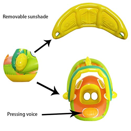 Con protezione solare regolabile/rimovibile: il parasole di questo galleggiante per bambini può essere regolato su una copertura completa o mezza per evitare che la pelle sensibile del bambino si scotti. È possibile rimuovere il baldacchino quando si gioca in una giornata nuvolosa o di sera.