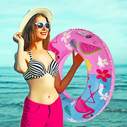 ♥ Design carino: l'anello da nuoto gonfiabile è stampato con accattivanti motivi di fenicottero, anguria, ananas e il design carino ti renderà il fulcro della festa in piscina.