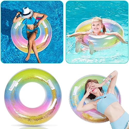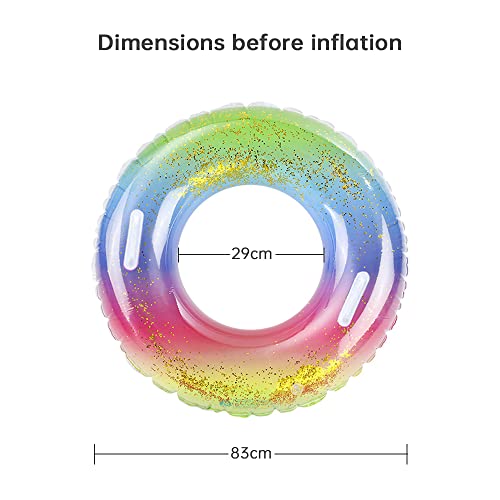 Anello da nuoto con paillettes: le paillettes dorate sono posizionate all'interno dell'anello galleggiante, non solo hanno un aspetto più elegante e attraente, ma sono anche più visibili in acqua, rendono il nuoto più sicuro e aiutano a afferrare facilmente il bambino o il partner perfetto per spiagge e piscine. Un must per le festività