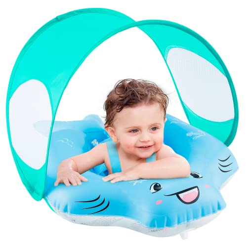 Salvagente Neonato, Theefun Salvagente Neonato con Parasole Ciambella Neonato Mare Baby Float Neonato Adatto a Bambini 3-36 Mesi