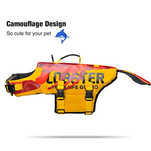 Salvataggio per cani, salvagente, per animali domestici, regolabile, con manico per nuoto, canottaggio, caccia, giacca stile aragosta (L)
