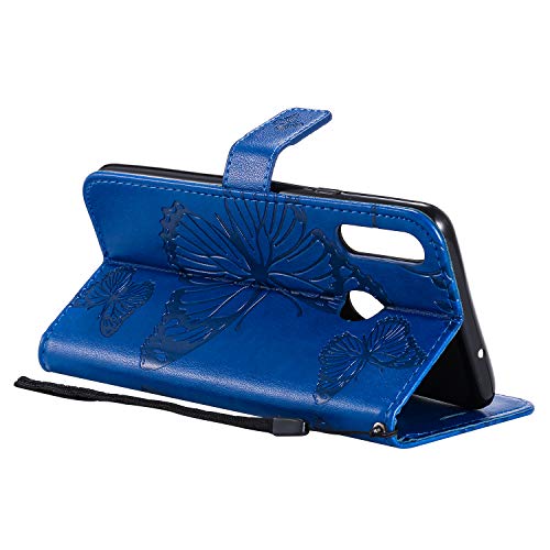 Samanoya Cover per Galaxy A20s, Flip Cover a Libro in Silicone e Pelle Premium con Motivo a Farfalla Convertibile in Supporto Custodia per Samsung Galaxy A20s (Galaxy A20s, Blu)
