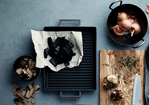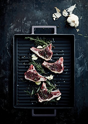 Articolo consegnato: 1 x bistecchiera in ghisa + 1 x ricettario/manuale, 32x26 cm - altezza 4,5 cm, colore viola ginepro