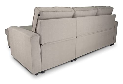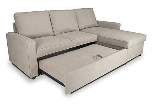 SAMIRA Divano letto angolare con contenitore, divano con chaise longue tortora mod. Kennedy